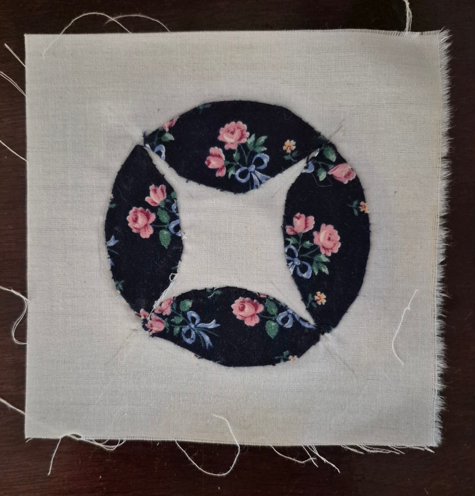 For this block, my mix‑and‑match approach of machine piecing and hand piecing continues. Straight seams? Machine all the way. But Block A3’s curves and appliqué call for handwork. Blind appliqué has always been one of my shakier skills, but the only way to improve is to practice—so that’s exactly what I’m doing.